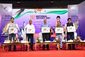 ଭୁବନେଶ୍ୱର, ୨୫/୦୧/୨୦୨୫ (ଓଡ଼ିଶା ସମାଚାର/ରଜତ ମହାପାତ୍ର)- ୧୫ ତମ ଜାତୀୟ ମତଦାତା ଦିବସ ପାଳନର ରାଜ୍ୟସ୍ତରୀୟ ସମାରୋହ ଭୁବନେଶ୍ୱର ରବୀନ୍ଦ୍ର ମଣ୍ଡପଠାରେ ମହାସମାରୋହରେ ପାଳିତ ହୋଇଛି । ଏହି କାର୍ଯ୍ୟକ୍ରମରେ ମୁଖ୍ୟ ଶାସନ ସଚିବ ଶ୍ରୀ ମନୋଜ ଆହୁଜା ମୁଖ୍ୟ ଅତିଥି ଭାବରେ ଯୋଗଦେଇ ମତଦାତା ସଂକଳ୍ପ ପାଠ କରାଇଥିଲେ ।
