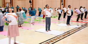 ଭୁବନେଶ୍ୱର,୨୧/୦୬/୨୦୨୫(ଓଡ଼ିଶା ସମାଚାର/ରଜତ ମହାପାତ୍ର)- ରାଜଭବନରେ ଅନ୍ତର୍ଜାତୀୟ ଯୋଗ ଦିବସ ପାଳିତ ହୋଇଯାଇଛି । ଚଳିତ ଜୁନ ୨୧ ତାରିଖ ସକାଳେ ନ୍ୟୁ ଅଭିଷେକ ହଲ୍ ଠାରେ ଆୟୋଜିତ ସ୍ୱତନ୍ତ୍ର କାର୍ଯ୍ୟକ୍ରମରେ ମାନ୍ୟବର ରାଜ୍ୟପାଳ ଡ଼. ହରି ବାବୁ କମ୍ଭମପାଟି ଏବଂ ରାଜ୍ୟର ମାନ୍ୟବର ପ୍ରଥମ ମହିଳା ଶ୍ରୀମତୀ ଜୟଶ୍ରୀ କମ୍ଭମପାଟି ସାମିଲ ହେବା ସହ ଯୋଗ ଅଭ୍ୟାସ କରିଥିଲେ । ଚଳିତ ବର୍ଷ “ଏକ ପୃଥିବୀ ଏବଂ ଏକ ସ୍ୱାସ୍ଥ୍ୟ ପାଇଁ ଯୋଗ” ଶୀର୍ଷକକୁ ଆଧାର କରି ଆୟୋଜିତ ଏହି କାର୍ଯ୍ୟକ୍ରମରେ ରାଜ୍ୟପାଳଙ୍କ ପ୍ରମୁଖ ଶାସନ ସଚିବ ଏନ୍.ବି.ଏସ୍. ରାଜପୁତଙ୍କ ସମେତ ରାଜଭବନର ଅଧିକାରୀ/ କର୍ମଚାରୀ ଅଂଶ ଗ୍ରହଣ କରିଥିଲେ ।
