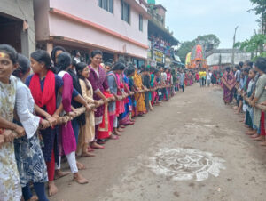 ଚାର ମାଳ ଖୋଲାହେବା ପରେ ଡାହୁକର ଉଚ୍ଚାଟ ଡାକ ମଧରେ ହଜାର ହଜାର ଶ୍ରଦ୍ଧାଳୁ ଶ୍ରୀଜୀଉ ମାନେ ରଥା ରୁଢ଼ ହୋଇଥିବା ରଥକୁ ଟାଣିଥିଲେ । ହରିବୋଲ, ହୁଳହୁଳି ଧ୍ୱନି ସାଙ୍ଗକୁ ନମସଂକ୍ରିତନ ପରିବେଶକୁ ଅଧିକ ଉତ୍ସମୁଖରିତ କରିଥିଲା । ସନ୍ଧ୍ୟା ସାତଟା ରେ ମାଉସୀ ମା ମନ୍ଦିର ନିକଟରେ ରଥା ରୁଢ଼ଶ୍ରୀ ଜୀଉ ମାନଙ୍କ ରଥ ପହଂଚି ଥିଲା ।