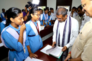 କଟକ, ୨୩/୦୮/୨୦୨୫ (ଓଡ଼ିଶା ସମାଚାର)- କେନ୍ଦ୍ର ଶିକ୍ଷା ମନ୍ତ୍ରୀ ଧର୍ମେନ୍ଦ୍ର ପ୍ରଧାନ ଆଜି କଟକ ସ୍ଥିତ ସେକେଣ୍ଡାରୀ ବୋର୍ଡ ହାଇସ୍କୁଲ ପରିଦର୍ଶନ କରିବା ସହ ଅନୁଷ୍ଠାନର ଶିକ୍ଷକ ଶିକ୍ଷୟିତ୍ରୀ ଓ ଛାତ୍ରଛାତ୍ରୀମାନଙ୍କୁ ଭେଟିଛନ୍ତି । ଏହି ଅବସରରେ ଶ୍ରୀ ପ୍ରଧାନ ସ୍ମାର୍ଟ କ୍ଲାସରୁମରେ ପିଲାମାନଙ୍କ ସହ ବସି ପାଠପଢାର ଶୈଳୀ ଦେଖିବା ସହ ଅଧ୍ୟୟନରତ ଛାତ୍ରଛାତ୍ରୀଙ୍କ ସହ କଥା ହୋଇଥିଲେ ।