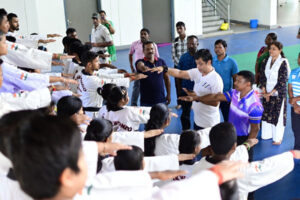 ପରେ ପରେ ଜିଲ୍ଲାପାଳ ଇଣ୍ଡୋର ଷ୍ଟାଡ଼ିୟମରେ ବ୍ୟାଡ଼ମିଣ୍ଟନ, ତାଇକାଣ୍ଡୋ ଏବଂ ଅନ୍ୟାନ୍ୟ କ୍ରୀଡ଼ାବିତ ମାନଙ୍କୁ ଭେଟି କ୍ରୀଡା କ୍ଷେତ୍ରରେ ନିଜର ଉତ୍ତମ ପ୍ରଦର୍ଶନ କରି ଦେଶ, ରାଜ୍ୟ ତଥା ଜିଲ୍ଲା ପାଇଁ ଗୌରବ ଆଣିବାକୁ କହିଥିଲେ।ଏହି କାର୍ଯ୍ୟକ୍ରମ ରେ ହକି ପ୍ରଶିକ୍ଷକ ଅମୁଲ୍ୟ କୁମାର ବେହେରା, ମମତା କିଣ୍ଡୋ, କ୍ରୀଡା ଶିକ୍ଷକ ଶିକ୍ଷୟତ୍ରୀ, ବିଦ୍ୟାଳୟ ଛାତ୍ରଛାତ୍ରୀ ଉପସ୍ଥିତ ଥିଲେ। ପରେ ପରେ ଜିଲ୍ଲା ସ୍କୁଲ ଓ ହକିପ୍ରଶିକ୍ଷଣ କେନ୍ଦ୍ର, ଏନ. ସି. କଲେଜ ମଧ୍ୟରେ ପ୍ରଦର୍ଶନୀ ହକି ପ୍ରତିଯୋଗିତା ଅନୁଷ୍ଠିତ ହୋଇଥିଲା। ଏନ ସି କଲେଜ ଦଳ ଚାମ୍ପିୟନ ହୋଇଥିଲେ।