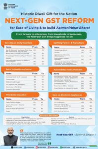 ଚିନି, ସୁଇଟନର ଓ ବିଭିନ୍ନ ବାସ୍ନାଯୁକ୍ତ ପାନୀୟ ଭଳି ସାମଗ୍ରୀରେ ଟିକସ ୨୮ ପ୍ରତିଶତରୁ ସିଧା ୪୦ ପ୍ରତିଶତକୁ ବୃଦ୍ଧି କରାଯାଇଛି । ନମକିନ୍, ଭୁଜିଆ, ମିକ୍ସଚର ଭଳି ପ୍ୟାକେଟେଡ୍ ସ୍ନାକ୍ସ ଉପରେ ଟିକସ ୧୨ ପ୍ରତିଶତରୁ ୫ ପ୍ରତିଶତକୁ ହ୍ରାସ କରିଛି । ବ୍ୟକ୍ତିଗତ ସ୍ୱାସ୍ଥ୍ୟ ଓ ଜୀବନବୀମାରେ ଜିଏସଟି ଲାଗିବ ନାହିଁ । ୨୨ ସେପ୍ଟେମ୍ବରରୁ ନୂଆ ଜିଏସଟି ଲାଗୁ ହେବ ।