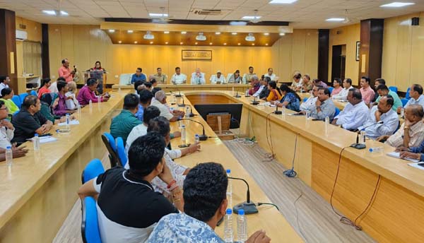 ଜଗତସିଂହପୁର,୦୬/୦୯/୨୦୨୫ (ଓଡ଼ିଶା ସମାଚାର)-ଆଜି ପୂର୍ବାହ୍ନରେ ଜିଲ୍ଲାପାଳଙ୍କ କାର୍ଯ୍ୟାଳୟର ସଦଭାବନା ସଭାଗୃହ ଠାରେ ଆଗାମୀ ଦଶହରା ପର୍ବ, ରାବଣ ପୋଡ଼ି ଓ ଭସାଣି ଉତ୍ସବ ପାଳନ ନିମନ୍ତେ ଏକ ପ୍ରସ୍ତୁତି ବୈଠକ ଜିଲ୍ଲାପାଳ ଶ୍ରୀ ଜେ ସୋନାଲ ମହୋଦୟ ଙ୍କ ଅଧ୍ୟକ୍ଷତା ରେ ଅନୁଷ୍ଠିତ ହୋଇଯାଇଛି। ଏହି ବୈଠକ ରେ ଯୋଗ ଦେଇ ମାନ୍ୟବର ବିଧାୟକ ଶ୍ରୀ ଅମରେନ୍ଦ୍ର ଦାସ ଶାରଦୀୟ ପର୍ବ ମା ଦୁର୍ଗା ଙ୍କ ଆଗମନକୁ ଶାନ୍ତି ଶୃଙ୍ଖଳାର ସହ ପାଳନ କରିବା ସମସ୍ତଙ୍କର କର୍ତ୍ତବ୍ୟ ବୋଲି କହିଥିଲେ । ଏଥି ସହିତ ଏହି ବର୍ଷ ରାବଣ ପୋଡ଼ି ରେ ଇଲେକ୍ଟ୍ରୋନିକ କୋଲ୍ଡ ଫାୟାର ର ବ୍ୟବହାର କରାଗଲେ ଏହା ଅତ୍ୟନ୍ତ ଚିତ୍ତାକର୍ଷକ ହେବା ସହ ଦର୍ଶକ ଙ୍କୁ ଆକୃଷ୍ଟ କରିବ ବୋଲି ନିଜ ମତ ଦେଇଥିଲେ । ବୈଠକ ରେ ଉପସ୍ଥିତ ରହି ଜିଲ୍ଲା ପରିଷଦ ଅଧ୍ୟକ୍ଷ ଶ୍ରୀ ମନୋଜ କୁମାର ଭୋଇ ପୂଜା ଭସାଣୀ ରେ ଡି ଜେ ସାଉଣ୍ଡ ର ଅପବ୍ୟବହାର କୁ ବନ୍ଦ କରିବା ପାଇଁ ପ୍ରସ୍ତାବ ଦେଇଥିଲେ ଯାହା ସର୍ବ ସମ୍ମତି ରେ ଗୃହୀତ ହୋଇଥିଲା ।