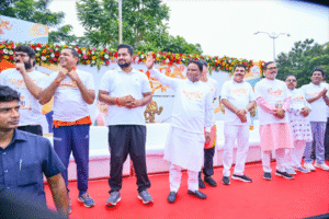 ଭୁବନେଶ୍ୱର,୨୨/୦୯/୨୦୨୫(ଓଡ଼ିଶା ସମାଚା/ଦୀପ୍ତିରଂଜନ କାନୁନଗୋ)- ନିଶାମୁକ୍ତ ଭାରତ ଗଠନ ସଂକଳ୍ପ ନେଇ ସାରା ଦେଶରେ ଗଣଦୌଡ । ରାଜଧାନୀ ଭୁବନେଶ୍ୱରରେ କ୍ରୀଡା ଓ ଯୁବସେବା ବିଭାଗ ସହ ବିଜେପି ଜନତା ଯୁବ ମୋର୍ଚ୍ଚା ଦ୍ୱାରା ନମୋ ଯୁବ ରନ ମାରାଥନ ଆୟୋଜନ କରାଯାଇଛି । କଳିଙ୍ଗ ଷ୍ଟାଡିୟମରୁ ଜନତା ମଇଦାନ ପର୍ଯ୍ୟନ୍ତ ଦୌଡ଼ିଲେ ୧୦ ହଜାର ଯୁବକ ଯୁବତୀ । ମୁଖ୍ୟମନ୍ତ୍ରୀ ଶ୍ରୀ ମୋହନ ଚରଣ ମାଝି, କ୍ରୀଡା ମନ୍ତ୍ରୀ ସୂର୍ଯ୍ୟବଂଶୀ ସୁରଜ, ଗଣଶିକ୍ଷା ମନ୍ତ୍ରୀ ନିତ୍ୟାନନ୍ଦ ଗଣ୍ଡ, ବିଧାୟକ ବାବୁ ସିଂ, ସିଦ୍ଧାନ୍ତ ମହପାତ୍ର ଓ ଅନ୍ୟାନ୍ୟ ବରିଷ୍ଠ ନେତା ମାରାଥନ ଦୌଡ଼ିଥିଲେ ।