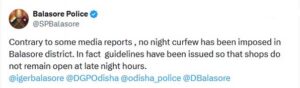 ବାଲେଶ୍ୱର, ୦୭/୧୦/୨୦୨୫ (ଓଡ଼ିଶା ସମାଚାର)- ବାଲେଶ୍ଵରରେ ରାତ୍ରକାଳୀନ କର୍ଫ୍ୟୁ ଖବର ମିଛ। ଏ ନେଇ ସାମାଜିକ ଗଣ ମାଧ୍ୟମ ଏକ୍ସ ଜରିଆରେ ବାଲେଶ୍ଵର ଏସପି ସୂଚନା ଦେଇଛନ୍ତି । କିଛି ଗଣମାଧ୍ୟମରେ ରାତ୍ରକାଳୀନ କର୍ଫ୍ୟୁ ଜାରି କରାଯାଇଥିବା ଖବର ପ୍ରକାଶିତ ହୋଇଛି। ହେଲେ ଏଭଳି କିଛି ଜାରି କରାଯାଇନାହିଁ । କେବଳ ବିଳମ୍ବିତ ରାତିରେ ଦୋକାନ ଖୋଲା ନ ରଖିବାକୁ ନିର୍ଦେଶ ରହିଛି।