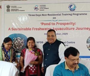 ଭୁବନେଶ୍ୱର,୧୦/୧୦/୨୦୨୫ (ଓଡ଼ିଶା ସମାଚାର/ରଜତ ମହାପାତ୍ର)- ମହିଳା ସ୍ୱୟଂ ସାହାୟକ ଗୋଷ୍ଠୀ ମାନଙ୍କ ପାଇଁ ସ୍ଥାୟୀ ମିଠାପାଣି ମାଛ ଚାଷକୁ ଉତ୍ସାହିତ କରିବା ଉଦ୍ଦେଶ୍ୟରେ “ପଣ୍ଡ ଟୁ ପ୍ରସ୍ପେରିଟି” (Pond to Prosperity) ନାମକ ଏକ ବିଶେଷ କାର୍ଯ୍ୟକ୍ରମ ଆୟୋଜିତ ହୋଇଥିଲା। ଏହାକୁ ନ୍ୟାସନାଲ ଫ୍ରେଶଓଟର ଫିଶ ବ୍ରୁଡ୍ ବ୍ୟାଙ୍କ (NFFBB), କୌଶଳ୍ୟଗଙ୍ଗା, ଭୁବନେଶ୍ୱର ଓ ଏକତା ଟ୍ରଷ୍ଟ – ଦି ପାୱର ଅଫ୍ ୟୁନିଟି ଙ୍କ ସହଯୋଗରେ ଆୟୋଜନ କରାଯାଇଥିଲା।