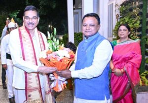 ବାସଭବନରେ ମୁଖ୍ୟମନ୍ତ୍ରୀ ଏବଂ ତାଙ୍କ ଧର୍ମପତ୍ନୀ ରାଜ୍ୟପାଳଙ୍କୁ ପୁଷ୍ପଗୁଚ୍ଛ ଓ ଉତ୍ତରୀୟ ଦେଇ ସ୍ୱାଗତ କରିଥିଲେ ।