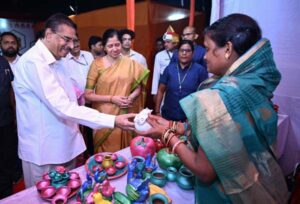 ଭୁବନେଶ୍ୱର,୧୬/୧୦/୨୦୨୫ (ଓଡ଼ିଶା ସମାଚାର/ରଜତ ମହାପାତ୍ର)- ମାନ୍ୟବର ରାଜ୍ୟପାଳ ଡକ୍ଟର ହରି ବାବୁ କମ୍ଭମପାଟି ଗୁରୁବାର ସନ୍ଧ୍ୟାରେ ରାଜ୍ୟର ମାନ୍ୟବର ପ୍ରଥମ ମହିଳା ଡ଼. ଜୟଶ୍ରୀ କମ୍ଭମପାଟିଙ୍କ ସହିତ ଭୁବନେଶ୍ୱର ଇଡକୋ ପ୍ରଦର୍ଶନୀ ପଡ଼ିଆରେ ଆୟୋଜିତ ଆଦିବାସୀ ମହୋତ୍ସବ ଏବଂ ମୃତ୍ତିକା – ଟେରାକୋଟା ପ୍ରଦର୍ଶନୀ ପରିଦର୍ଶନ କରିଥିଲେ। ଏହି ଗସ୍ତ ମାନ୍ୟବର ପ୍ରଧାନମନ୍ତ୍ରୀ ନରେନ୍ଦ୍ର ମୋଦିଙ୍କ “ଭୋକାଲ୍ ଫର୍ ଲୋକାଲ୍” ପଦକ୍ଷେପ ପ୍ରତି ରାଜ୍ୟପାଳଙ୍କ ପ୍ରତିବଦ୍ଧତା ପ୍ରତିଫଳିତ କରେ, ଯାହା ଜନସାଧାରଣଙ୍କୁ ସ୍ୱଦେଶୀ ଉତ୍ପାଦକୁ ପ୍ରୋତ୍ସାହିତ କରିବା ଏବଂ ସ୍ଥାନୀୟ କାରିଗରମାନଙ୍କୁ ସଶକ୍ତ କରିବା ପାଇଁ ଉତ୍ସାହିତ କରିବ।
