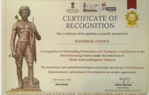 ଏହି ପଦକ୍ଷେପ ଅଧୀନରେ, କେନ୍ଦୁଝର ଜିଲ୍ଲା ଏହାର ଲୋକାଭିମୁଖୀ ଯୋଜନା ପ୍ରଣୟନର ଆଭିମୁଖ୍ୟ, ଅଭିନବ ଯୋଜନା ଏବଂ ଆଦିବାସୀ ସମ୍ପ୍ରଦାୟ ପାଇଁ କଲ୍ୟାଣକାରୀ ଯୋଜନାର ପ୍ରଭାବଶାଳୀ କାର୍ଯ୍ୟାନ୍ୱୟନ କରିବାରେ ସ୍ୱତନ୍ତ୍ର ଛାପ ଛାଡ଼ି ପ୍ରଶଂସା ସାଉଁଟି ପାରିଛି। ଜାତୀୟ ସ୍ତରରେ ଏଭଳି ମାନ୍ୟତା ପାଇବା ଶିକ୍ଷା, ଜୀବିକା ବୃଦ୍ଧି, ମହିଳା ସଶକ୍ତିକରଣ ଏବଂ ଡିଜିଟାଲ୍ ଅନ୍ତର୍ଭୁକ୍ତି ମାଧ୍ୟମରେ ଆଦିବାସୀ ଅଞ୍ଚଳରେ ଜୀବନର ଗୁଣବତ୍ତା ଉନ୍ନତ କରିବା ପାଇଁ କେନ୍ଦୁଝର ଜିଲ୍ଲା ପ୍ରଶାସନର ପ୍ରତିବଦ୍ଧତାକୁ ଦର୍ଶାଉଛି । ସ୍ଥାନୀୟ ପ୍ରଶାସନ, ବିଭିନ୍ନ ବିଭାଗ ଏବଂ ତୃଣମୂଳ ସ୍ତରର କର୍ମକର୍ତ୍ତାଙ୍କ ସମନ୍ୱିତ ପ୍ରୟାସ ଯୋଗୁଁ ଜିଲ୍ଲାର ସଫଳତା ସମ୍ଭବ ହୋଇପାରିଛି ଯେଉଁମାନେ ବିକାଶକୁ ଶେଷ ମାଇଲ ପର୍ଯ୍ୟନ୍ତ ପହଞ୍ଚାଇବା ସୁନିଶ୍ଚିତ କରିବା ପାଇଁ କାର୍ଯ୍ୟ କରିଚାଲିଛନ୍ତି।