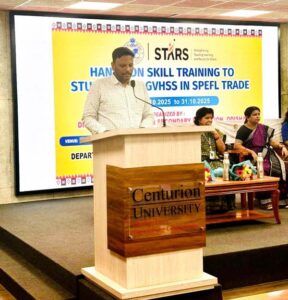 ଭୁବନେଶ୍ୱର,୨୭/୧୦/୨୦୨୫ (ଓଡ଼ିଶା ସମାଚାର/ରଜତ ମହାପାତ୍ର)- ଆଜି ସେଞ୍ଚୁରିଆନ୍ ୟୁନିଭର୍ସିଟି ଠାରେ ସରକାରୀ ଧନ୍ଦାମୂଳକ ଉଚ୍ଚ ମାଧ୍ୟମିକ ବିଦ୍ୟାଳୟର ଛାତ୍ରଛାତ୍ରୀ ମାନଙ୍କ ନିମନ୍ତେ SPEFL Trade କୁ ନେଇ ଏକ ୫ ଦିବସୀୟ ଆବାସିକ ବ୍ୟବହାରିକ ଦକ୍ଷତା ବିକାଶ ( Hands on Skill ) ପ୍ରଶିକ୍ଷଣ ଉଦଘାଟିତ ହୋଇଯାଇଛି ।