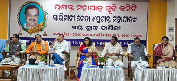 ମଙ୍ଗଳବାର ସ୍ଥାନୀୟ ଗୀତ ଗୋବିନ୍ଦ ସଦନରେ ପ୍ରଶାନ୍ତ ମହାପାତ୍ର ସ୍ମୃତି କମିଟି ପକ୍ଷରୁ ଆୟୋଜିତ ତୃତୀୟ ଶ୍ରାଦ୍ଧବାର୍ଷିକୀରେ ମୁଖ୍ୟ ଅତିଥି ଭାବେ ମାନ୍ୟବର ଆଇନ, ପୂର୍ତ ଓ ଅବକାରୀ ମନ୍ତ୍ରୀ ଶ୍ରୀଯୁକ୍ତ ପୃଥ୍ୱୀରାଜ ହରିଚନ୍ଦନ ମୁଖ୍ୟ ଅତିଥି ଭାବେ ଯୋଗ ଦେଇ ପ୍ରଶାନ୍ତ ମହାପାତ୍ରଙ୍କ ନିଷ୍ଠା କର୍ତବ୍ୟ ଯୋଗୁ ଆଜି ବି ସମସ୍ତଙ୍କ ମନରେ ରହିଛନ୍ତି । ସେତେବେଳେ ପୁରୁଣା ଭୁବନେଶ୍ୱର କହିଲେ ପ୍ରଶାନ୍ତ ଭାଇନାକୁ ବୁଝାଏ । ବିଶିଷ୍ଟ ଅତିଥିଭାବେ ବିଜେଡି ନେତା ଅରୂପ ପଟ୍ଟନାୟକ ଯୋଗଦେଇ କହିଥିଲେ ସମସ୍ତେ ଫାଇଟର ଯାହାଙ୍କୁ ରଶ୍ମୀ ମହାପାତ୍ର ଏହି ମଂଚରେ ଏକାଠି କରିପାରିଛି । ପ୍ରଶାନ୍ତ ମହାପାତ୍ର ବିଜୁ ବାବୁଙ୍କ ଭଳି ଲଢିକି ନେବାକୁ ଚାହୁଁଥିଲେ, ଦାନ ଚାହୁଁ ନ ଥିଲେ । ସେଥିପାଇଁ ବିଜୁ ବାବୁଙ୍କର ପ୍ରିୟ ହୋଇଥିଲେ ପ୍ରଶାନ୍ତ । ୧୯୮୦-୯୦ ଦଶକର କାଳ ଖଣ୍ଡନକୁ ଆଲୋଚନା କଲେ ପ୍ରଶାନ୍ତ ମହାପାତ୍ରଙ୍କ କଥା ନ କହିଲେ ଭୁବନେଶ୍ୱର ବିକାଶ ସେତେବେଳେ ଅଧୁରା ରହିଯିବ ବୋଲି ମୁଖ୍ୟବକ୍ତା ଭାବେ ଯୋଗଦେଇ ପୂର୍ବତନ ବିଧାୟକ ପ୍ରଭାତ ତ୍ରପାଠି କହିଥିଲେ ।