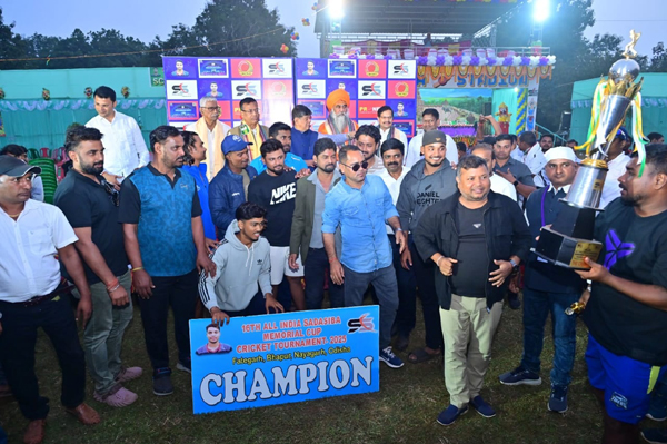 ଭାପୁର ୨୨/୧୨/୨୦୨୫ (ଓଡ଼ିଶା ସମାଚାର /ଗିତିକାନ୍ତ ପଣ୍ଡା )- ଭାପୁର ବ୍ଲକ ଅନ୍ତର୍ଗତ ଫତେଗଡ଼ ନାଲିସାଗର ଖେଳପଡିଆରେ ଚାଲିଥିବା ୧୬ ତମ ସର୍ବଭାରତୀୟ ସଦାଶିବ ସ୍ମାରକୀ କ୍ରିକେଟର ଫାଇନାଲ ମ୍ୟାଚ ଅନୁଷ୍ଠିତ ହୋଇ ଯାଇଛି। ଟିସିସି ଭୁବନେଶ୍ୱର (ତମାଣ୍ଡୋ) ସହ ସାଇ ଇଲେଭେନ ଭୁବନେଶ୍ୱର ମଧ୍ୟରେ ଫାଇନାଲ ମ୍ୟାଚ ଅନୁଷ୍ଠିତ ହୋଇଥିଲା। ସାଇ ଇଲେଭେନ ଟସ୍ ଜିତି ବ୍ୟାଟିଂ କରି ନିର୍ଦ୍ଧାରିତ ୨୦ ଓଭରରେ ୪ ୱିକେଟ୍ ହରାଇ ୨୫୩ ରନ କରିବାକୁ ସକ୍ଷମ ହୋଇଥିଲା। ଜବାବରେ ଟିସିସି ତମାଣ୍ଡ ୧୪ ଓଭରରେ ସମସ୍ତ ୱିକେଟ୍ ହରାଇ ୧୩୮ ରନ କରି ରନସ ଅପ ହୋଇଥିଲା।