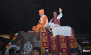ବରଗଡ଼ (ମଥୁରା),୩୦/୧୨/୨୦୨୫ (ଓଡ଼ିଶା ସମାଚାର /ପ୍ରଭୁଦତ ମହାନ୍ତି)- ମୁଖ୍ୟମନ୍ତ୍ରୀ ଶ୍ରୀ ମୋହନ ଚରଣ ମାଝୀ ସୁଦୂର କେନ୍ଦୁଝର କାର୍ୟ୍ୟକ୍ରମ ସାରି, ହାତୀରେ ବସି ମଥୁରା ଭ୍ରମଣ ସହ ଦ୍ୱିତୀୟ ରଙ୍ଗମଞ୍ଚ “ରଙ୍ଗ ମହଲ” ରେ ପହଞ୍ଚିଛନ୍ତି । ରଙ୍ଗ ମହଲରେ କଂସ ମହାରାଜ ତାଙ୍କୁ ଭେଟିଥିଲେ ଏବଂ ମୁଖ୍ୟମନ୍ତ୍ରୀଙ୍କୁ ଶୁଭେଚ୍ଛା ଓ ସ୍ବାଗତ ଜଣାଇଥିଲେ। ବିଶ୍ୱ ପ୍ରସିଦ୍ଧ ୭୮ ତମ ଧନୁଯାତ୍ରା ର ଆୟୋଜନ ପାଇଁ ସମସ୍ତ ବରଗଡ଼ବାସୀଙ୍କୁ ଶୁଭେଚ୍ଛା ଜଣାଇଥିଲେ ଓ ଯାତ୍ରା ଆୟୋଜକ କମିଟିକୁ ପ୍ରଶଂସା କରିଥିଲେ ।