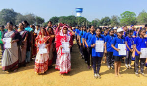 ଭୁବନ ୧୨/୦୧/୨୦୨୬ (ଓଡ଼ିଶା ସମାଚାର)- ରାଷ୍ଟ୍ରୀୟ ସଂଗୀତ “ବନ୍ଦେ ମାତରମ” ର ୧୫୦ ତମ ବାର୍ଷିକୀ ପାଳନ ଅବସରରେ ଭୁବନ ବ୍ଲକ ପ୍ରଶାସନ ତରଫରୁ ହାଇସ୍କୁଲ ପଡ଼ିଆରେ ସାମୁହିକ ବନ୍ଦେ ମାତରଂ ଗାନ କାର୍ଯ୍ୟକ୍ରମ ଅନୁଷ୍ଠିତ ହୋଇଯାଇଛି। ବିଡ଼ିଓ ଆୟୁଷୀ ମହାପାତ୍ର ଙ୍କ ଅଧ୍ୟକ୍ଷତାରେ ଅନୁଷ୍ଠିତ କାର୍ଯ୍ୟକ୍ରମରେ ସ୍ବାମୀ ବିବେକାନନ୍ଦଙ୍କ ଜୟନ୍ତୀ ଉତ୍ସବରେ ଆତ୍ମ ନିର୍ଭରଶୀଳ ଭାରତ ସ୍ବଦେଶୀ ସଂକଳ୍ପ ପତ୍ର ଶପଥ ପାଠ କରାଯାଇଥିଲା।