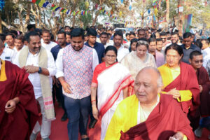 ଯାଜପୁର, ୧୪/୦୧/୨୦୨୬ (ଓଡ଼ିଶା ସମାଚାର)- ରାଜ୍ୟ ସରକାରଙ୍କ ସଂସ୍କୃତି ବିଭାଗ, ପର୍ଯ୍ୟଟନ ବିଭାଗ ଏବଂ ଯାଜପୁର ଜିଲ୍ଲା ପ୍ରଶାସନର ମିଳିତ ସହଯୋଗରେ ଦ୍ଵିତୀୟ ଗୁରୁ ପଦ୍ମସମ୍ଭବଙ୍କ ପ୍ରାର୍ଥନା ସମାରୋହ ତଥା ଅନ୍ତର୍ଜାତୀୟ ବୌଦ୍ଧ ସମ୍ମିଳନୀ ବେଶ୍ ଉତ୍ସାହର ସହ ପାଳନ କରାଯାଉଅଛି। ଆଜି ସମ୍ମିଳନୀର ଚତୁର୍ଥ ଦିନରେ ମାନ୍ୟବର ଉପ ମୁଖ୍ୟମନ୍ତ୍ରୀ ଶ୍ରୀମତୀ ପ୍ରଭାତୀ ପରିଡ଼ା, ମାନ୍ୟବର ଓଡ଼ିଆ ଭାଷା, ସାହିତ୍ୟ ଓ ସଂସ୍କୃତି ବିଭାଗ ମନ୍ତ୍ରୀ ଶ୍ରୀ ସୂର୍ଯ୍ୟବଂଶୀ ସୂରଜ, ବଡ଼ଚଣା ବିଧାୟକ ଶ୍ରୀ ଅମର କୁମାର ନାୟକ, ପର୍ଯ୍ୟଟନ ବିଭାଗ ନିର୍ଦ୍ଦେଶକ ଶ୍ରୀ ଦୀପଙ୍କର ମହାପାତ୍ର, ଜିଲ୍ଲାପାଳ ଶ୍ରୀ ଅମ୍ବର କୁମାର କର, ଜିରାଙ୍ଗର ବୌଦ୍ଧ ଗୁରୁ ଜିଗମେ ରିଙ୍ଗପୋଚେ, ଲାଇଟ ଅଫ୍ ବୁଦ୍ଧ ଫାଉଣ୍ଡେସନର ମୁଖ୍ୟ ୱାଙ୍ଗମୋ ଦିକ୍ସେ ପ୍ରମୁଖ ଯୋଗ ଦେଇଥିଲେ।