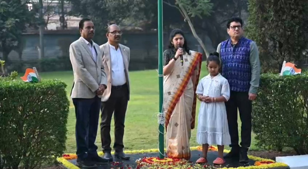 ଭୁବନେଶ୍ୱର,୨୬/୦୧/୨୦୨୬ (ଓଡ଼ିଶା ସମାଚାର/ରଜତ ମହାପାତ୍ର)- ଭୁବନେଶ୍ୱରସ୍ଥିତ ‘ଉନ୍ନତି ଭବନ’ ପରିସରରେ ୭୭ତମ ସାଧାରଣତନ୍ତ୍ର ଦିବସ ଅତ୍ୟନ୍ତ ଗାରିମା ଓ ଦେଶପ୍ରେମର ସହ ପାଳିତ ହୋଇଯାଇଛି। ଏହି ଅବସରରେ ଗୃହ ନିର୍ମାଣ ଓ ନଗର ଉନ୍ନୟନ ବିଭାଗର ପ୍ରମୁଖ ଶାସନ ସଚିବ ଶ୍ରୀମତୀ ଉଷା ପାଢ଼ୀ ଜାତୀୟ ପତାକା ଉତ୍ତୋଳନ କରିଥିଲେ। ଏହି କାର୍ଯ୍ୟକ୍ରମରେ ବିଭାଗର ବରିଷ୍ଠ ପଦାଧିକାରୀ ଓ କର୍ମଚାରୀମାନେ ଉପସ୍ଥିତ ଥିଲେ।