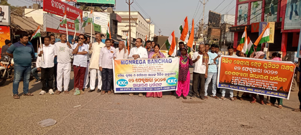 ବ୍ୟାସନଗର ୧୨/୦୨/୨୦୨୬ (ଓଡ଼ିଶା ସମାଚାର)- ଆଜି କେନ୍ଦ୍ର ଓ ରାଜ୍ୟସରକାର ଙ୍କ ଶ୍ରମିକ, କର୍ମଚାରୀ ଓ କୃଷକ ବିରୋଧୀ ଆଇନ କୁ ପ୍ରତ୍ୟାହାର ଦାବିରେ ୧୦ ଗୋଟି ମିଳିତ କେନ୍ଦ୍ରୀୟ ଟ୍ରେଡ଼ ୟୁନିଅନ ଓ ସ୍ୱାଧୀନ ଫେଡେରେସନ ଦେଶବ୍ୟାପି ସାଧାରଣଧର୍ମଘଟ ଓ ବନ୍ଦ ର ପ୍ରଭାବ ଯାଜପୁର ରୋଡ ରେ ପରିଲକ୍ଷିତ ହୋଇଥିଲା। ଏହି ସାଧାରଣ ଧର୍ମଘଟ ରେ ରାଜ୍ୟ ଅଣସଂଗଠିତ ଶ୍ରମିକ କର୍ମଚାରୀ କଂଗ୍ରେସ (କେ କେ, ସି )ର ରାଜ୍ୟ ସଭାପତି ବିଦ୍ୟାଧର ମହାନ୍ତି ଙ୍କ ନେତୃତ୍ୱ ରେ ବିଭିନ୍ନ ଶ୍ରମିକ ସଂଗଠନ ସାମିଲ ହେବା ସହିତ ବ୍ୟାସନଗର କଂଗ୍ରେସ କମିଟି ଏହି ବନ୍ଦ ରେ ସାମିଲ ହୋଇଥିଲେ ଶତାଧିକ କର୍ମୀ ଚୋରଦା ବାଇପାସ ମୁଖ୍ୟ ରାସ୍ତାରେ ରେ ବିକ୍ଷୋଭ କରିବା ଦ୍ୱାରା ଯାନବାହାନ ଠପ ହୋଇ ଯାଇ ଥିଲା ।