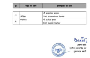 ଭୁବନେଶ୍ୱର,୦୩/୦୩/୨୦୨୬ (ଓଡ଼ିଶା ସମାଚାର /ଦୀପ୍ତିରଂଜନ କାନୁନଗୋ)-ସବୁ ଅପେକ୍ଷାର ଅନ୍ତ ଘଟିଛି। ରାଜ୍ୟସଭା ନିର୍ବାଚନ ପାଇଁ ପ୍ରାର୍ଥୀ ଘୋଷଣା କରିଛି ବିଜେପି। ବିଜେପି ରାଜ୍ୟ ସଭାପତି ମନମୋହନ ସାମଲ ଓ ସାଂସଦ ସୁଜିତ୍ କୁମାରଙ୍କୁ ଦଳ ପ୍ରାର୍ଥୀ ଘୋଷଣା କରିଛି। ଏ ସଂପର୍କରେ ଦଳ ପକ୍ଷରୁ ବିଜ୍ଞପ୍ତି ପ୍ରକାଶ ପାଇଛି।