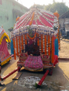 ସୁନା ବେଶ ଉପଲକ୍ଷେ ବିମାନକୁ ଫୁଲରେ ସୁସଜ୍ଜିତ କରାଯାଇଥିବାବେଳେ ବାଜା, ବାଣ , ଘଂଟ ଆଦି ଥାଟ ପଟୁଆରରେ ମେଲଣ ରୁ ଯାଇ ଜୟତଳଙ୍ଗ ବଣୁଆସାହିରେ ପହଂଚିଥିଲେ । ସେଠାରେ ଶ୍ରୀ ଜୀଉଙ୍କୁ ସର ଲବଣୀ ଲାଗି କରାଯାଇଥିଲା । ସେଠାରେ କେତେକ ଶ୍ରଦ୍ଧାଳୁଙ୍କ ଘରେ ଭୋଗ ଲାଗି କରାଯିବା ପରେ ବାଜା, ବାଣ , ଘଂଟ , ଆଲୋକ ଆଦି ଥାଟ ପଟୁଆରରେ ଶୋଭାଯାତ୍ରାରେ ଦେଉଳକୁ ପ୍ରତ୍ୟାବର୍ତନ କରିଥିଲେ । ଗ୍ରାମ ତଥା ପଡ଼ୋସି ଗ୍ରାମର ଯୁବକମାନେ ଶ୍ରୀ ଜୀଉ ଙ୍କୁ ଦୋଳ ବିମାନରେ ଶ୍ରଦ୍ଧାରେ ଆଗ୍ରହ ର ସହିତ କାନ୍ଧେଇବା ଦେଖାଯାଉଥିଲା । ଦେଉଳରେ ଶ୍ରୀ ଜୀଉ ପହଂଚିବା ବେଳକୁ ଶ୍ରୀ ଜୀଉଙ୍କୁ ସୁନା ବେଶ ରେ ଦେଖିବା ପାଇଁ ଗ୍ରାମର ମହିଳା ଓ ପୁରୁଷ ମାନେ ଭିଡ଼ ଜମାଇ ଶ୍ରୀ ଜୀଉଙ୍କୁ ସୁନା ବେଶରେ ଦର୍ଶନ କରିଥିଲେ । ପରେ ପରେ ଶ୍ରୀ ଜୀଉଙ୍କୁ ପଂଚାମୃତ କରାଯାଇ ସିଂହାସନ ବିଜେ କରାଯାଇଥିଲା । ଶ୍ରଦ୍ଧାଳୁ ମାନଙ୍କ ପାଇଁ ମନ୍ଦିର ପକ୍ଷରୁ ପ୍ରସାନ ସେବନର ବ୍ୟବସ୍ଥା କରାଯାଇଥିଲା ।