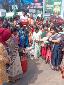 ବିଜୁ ଜନତା ଦଳ ର ରାଜ୍ୟ କୋଷଧ୍ୟକ୍ଷ ଶ୍ରୀଯୁକ୍ତ ସୁବାସ ସିଂ, ଜିଲା ସଭାପତି ଶ୍ରୀ ପ୍ରଫୁଲ୍ଲ ସିଂ ,ମହିଳା ବିଜେଡି ନେତ୍ରୀ ଶ୍ରୀମତୀ ଏ ଶ୍ରୀଦେବୀ ପ୍ରମୁଖ ଆନ୍ଦୋଳନର ନେତୃତ୍ବ ନେଇଥିଲେ। ବିଜେଡି ନେତ୍ରୀ ଏ ଶ୍ରୀଦେବୀ ଙ୍କ ସଭାପତିତ୍ୱରେ ଆୟୋଜିତ ସଭାରେ କହିଥିଲେ ଯେ ଗତ ମାର୍ଚ୍ଚ ୭ରୁ ଘରୋଇ ରନ୍ଧନ ଗ୍ୟାସ ସିଲିଣ୍ଡର ଦର ୬୦ ଟଙ୍କା ଓ ବାଣିଜ୍ୟିକ ସିଲିଣ୍ଡର ଦର ୧୧୫ ଟଙ୍କା ବଢ଼ିଥିଲା। ସାଧାରଣ ଜନତା, ଛୋଟ ବ୍ୟବସାୟୀ ଓ ସଂସ୍ଥାମାନଙ୍କ ଉପରେ ସରକାର ଅତିରିକ୍ତ ଅର୍ଥିକ ବୋଝ ଲଦିଦେଇଛନ୍ତି। ସୁଭଦ୍ରା ଯୋଜନା ନାଁରେ ମହିଳାମାନଙ୍କୁ ୫୦,୦୦୦ ଟଙ୍କା ଦେବାକୁ ପ୍ରତିଶ୍ରୁତି ଦେଇ ମାତ୍ର ୫,୦୦୦ ଟଙ୍କା ଦେଇ ଠକିଛି ସରକାର। ପୂର୍ବରୁ ଆନ୍ତର୍ଜାତୀୟ ବଜାରରେ ତେଲ ଦର କମିଥିଲା। କିନ୍ତୁ ଏହାର କାଣିଚାଏ ଲାଭ ସାଧାରଣ ଲୋକଙ୍କୁ ମିଳିଲାନି। ତେଲ କମ୍ପାନୀଙ୍କ ସ୍ବାର୍ଥ ପାଇଁ ଡବଲ୍ ଇଞ୍ଜିନ ସରକାର ଦିନରାତି ଏକ କରିଦେଇଛି।