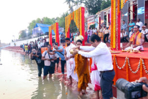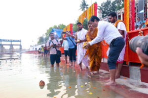 ଯାଜପୁର,୧୮/୦୩/୨୦୨୬ (ଓଡ଼ିଶା ସମାଚାର)- ଜିଲ୍ଲା ମହୋତ୍ସବ ଯଯାତି ୨୦୨୬ର ପୂର୍ବାଭାସ ସ୍ୱରୂପ ସପ୍ତମାତୃକା ମନ୍ଦିର ନିକଟସ୍ଥ ଦଶାଶ୍ବମେଧ ଘାଟରେ ଜିଲ୍ଲା ପ୍ରଶାସନ ପକ୍ଷରୁ ବୈତରଣୀ ମହାଆଳତୀ କରାଯାଇଛି। ଜିଲ୍ଲାପାଳ ତଥା ଜିଲ୍ଲା ସଂସ୍କୃତି ପରିଷଦର ଅଧ୍ୟକ୍ଷ ଶ୍ରୀ ଅମ୍ବର କୁମାର କର ବୈତରଣୀ ପୂଜାର୍ଚ୍ଚନାରେ ଯୋଗ ଦେଇଥିଲେ। ପ୍ରାତଃ ୫ ଟା ରେ ରକ୍ଷାକାଳୀ ମନ୍ଦିରଠାରୁ ଏକ ଶୋଭାଯାତ୍ରା ବାହାରି ଦଶାଶ୍ବମେଧ ଘାଟରେ ପହଞ୍ଚିଥିଲା।