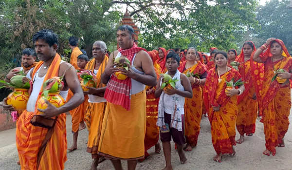 କଟକ ୨୨/୦୩/୨୦୨୬ (ଓଡିଶା ସମାଚାର/ଅଭୟ ଜେନା) ପାହାଳ ଥାନା ଅନ୍ତର୍ଗତ ଫୁଲନଖରା ନିକଟରେ ଥିବା ଖୁନୁକାର ଗ୍ରାମରେ ପ୍ରତିବର୍ଷ ପରି ଚଳିତବର୍ଷ ଶ୍ରୀଶ୍ରୀ ଭୁକ୍ତେଶ୍ଵର ମହାଦେବଙ୍କ ଏକାଦଶତମ ବାର୍ଷିକ ବିଶ୍ୱଶାନ୍ତି ଗୀତାଯଜ୍ଞ ଉପଲକ୍ଷେ ଚୈତ୍ର ମାସର ଶୁକ୍ଳପକ୍ଷର ପବିତ୍ର ତିଥିରେ ପୂର୍ବ ନିର୍ଦ୍ଧାରିତ ମାହେନ୍ଦ୍ର ବେଳା ଅମୃତ ଲଗ୍ନରେ ଅପରାହ୍ନ ସମୟରେ ଯଜ୍ଞର କର୍ତ୍ତା ରୂପେ ଖୁନୁକାର ଗ୍ରାମର କ୍ଷେତ୍ରମୋହନ ବାରିକ ଓ ତାଙ୍କ ସହଧର୍ମିଣୀ ମେନକା ବାରିକ ତାଙ୍କ ସହ ଯୋଗେନ୍ଦ୍ର ମହାରଣା ଓ ତାଙ୍କ ସହଧର୍ମିଣୀ ଗୀତା ମହାରଣାଙ୍କ ସମେତ ଗ୍ରାମର ଅନେକ ଶ୍ରଦ୍ଧାଳୁ ମାନସିକଧାରୀ ମହିଳା ଓ ପୁରୁଷମାନେ ପୁରୀ ମେନ୍ କେନାଲର ପୁରୁଣା କାଚ଼ରାମାଳ ହନୁମାନ ଘାଟର ପବିତ୍ର ଜଳକୁ କଳସୀରେ ଭରି ପୂଜାଅର୍ଚ୍ଚନା କରିବା ପରେ ଶୋଭାଯାତ୍ରାରେ ବାହାରି ଫୁଲନଖରା ୧୬ନଂ ଜାତୀୟ ରାଜପଥ ଦେଇ ନୂଆ କାଚ଼ରାମାଳ,ଜନ୍ମେଜୟପୁର ଗ୍ରାମ ଦେଇ ଶ୍ରୀଶ୍ରୀ ଭୁକ୍ତେଶ୍ଵର ମହାଦେବଙ୍କ ମନ୍ଦିର ପାଖ ଯଜ୍ଞ ମଣ୍ଡପରେ ପହଁଞ୍ଚି ଅଧିବାସ କଳସକୁ ଯଜ୍ଞସ୍ଥଳରେ ସ୍ଥାପନା କରିଥିଲେ।