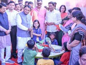 ଏହି ଅବସରରେ ମୁଖ୍ୟମନ୍ତ୍ରୀ ପିଲାମାନଙ୍କୁ ଶିକ୍ଷା ସହାୟତା ସାମଗ୍ରୀ କିଟ୍ ପ୍ରଦାନ କରିଥିଲେ। କାର୍ଯ୍ୟକ୍ରମରେ ପିଲାଙ୍କ ଦ୍ୱାରା ଅନୁଷ୍ଠିତ ହେଉଥିବା ଚିତ୍ରାଙ୍କନ ଷ୍ଟଲକୁ ବୁଲି ଦେଖିବା ସହିତ ପିଲାମାନଙ୍କୁ ପ୍ରଶଂସା କରିଥିଲେ। ଛୋଟ ଛୋଟ ପିଲାମାନେ ମଧ୍ୟ ସେମାନଙ୍କ ସ୍ୱଅଙ୍କିତ ଚିତ୍ର ମୁଖ୍ୟମନ୍ତ୍ରୀଙ୍କୁ ଉପହାର ଦେଇଥିଲେ।