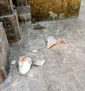 ଆଜି ସୋମବାର ସକାଳେ ସେବାୟତ ମାନେ ମନ୍ଦିର ବେଢ଼ାରେ ପଥର ପଡ଼ିଥିବା ଦେଖି ଉପରକୁ ଚାହିଁ ଦେଖିବାରେ ତାହା ଦଧିନଉତି ରୁ ଭାଙ୍ଗିଥିବା ଜଣାପଡିଥିଲା। ଏଥିପାଇଁ ଶ୍ରଦ୍ଧାଳୁମାନଙ୍କ ମଧ୍ୟରେ ତୀବ୍ର ଅସନ୍ତୋଷ ଦେଖାଦେଇଛି। ପ୍ରତ୍ନତତ୍ତ୍ଵ ବିଭାଗ ର ଖାମଖିଆଲ ମନୋଭାବ ପାଇଁ ଆର୍ଥିଙ୍ଗ୍ ଠିକ୍ ନଥିବାରୁ ଏଭଳି ଅଘଟଣ ଘଟିଲା ବୋଲି ସାଧାରଣରେ ମତପ୍ରକାଶ ପାଉଛି।