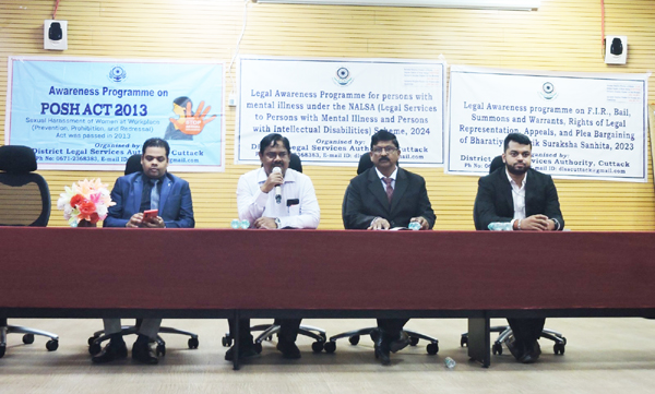 କଟକ ୨୩/୦୪/୨୦୨୬ (ଓଡ଼ିଶା ସମାଚାର)- ଜିଲ୍ଲା ଆଇନ୍ ସେବା ପ୍ରାଧୀକରଣ କଟକ ଓ ମାନସିକ ସ୍ଵାସ୍ଥ୍ୟ ପ୍ରତିଷ୍ଠାନ,କଟକ ମିଳିତ ଆନୁକୁଲ୍ୟରେ ଏକ ଆଇନ୍ ସଚେତନତା କାର୍ଯ୍ୟକ୍ରମ ଅନୁଷ୍ଠିତ ହୋଇଛି। ଉକ୍ତ କାର୍ଯ୍ୟକ୍ରମରେ ମାନସିକ ସ୍ଵାସ୍ଥ୍ୟ ପ୍ରତିଷ୍ଠାନର ନିର୍ଦ୍ଦେଶକ ଶ୍ରୀଯୁକ୍ତ ଅଜୟ କୁମାର ମିଶ୍ର ସଭାପତିତ୍ବ କରିଥିଲେ। ଆଇନ୍ ସେବା ପ୍ରାଧୀକରଣ,କଟକ ସଚିବ ଶ୍ରୀ ଜଗଦିଶ ଚନ୍ଦ୍ର ଜେନା , ଆଇନଜୀବୀ ଶ୍ରୀ ବିଜୟ କୁମାର ପଣ୍ଡା ଓ ରଜନୀକାନ୍ତ ଦାଶ ଯୋଗ ଦେଇଥିଲେ।