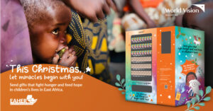 World Vision Singapore will deploy giving machines at two malls – Great World and Parkway Parade – from 1 November for a period of two months. Each giving machine will include items of food, clean water, health and nutrition services that the public can purchase with a donation of $10, $20, $50 or $100 to give towards the vulnerable communities in East Africa to battle the hunger crisis.
