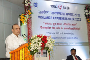 Cuttack,4/11/2022 ( Odisha Samachar )- This year, the Vigilance Awareness Week is being observed from 31st October to 6th November, 2022 on the theme “Corruption free India for a developed Nation”. Today, Shri Y.K. Jethwa, Director Vigilance addressed Senior Functionaries of at a function organized by National Aluminium Corporation Ltd. (NALCO), Bhubaneswar as Chief Guest on the occasion of Vigilance Awareness Week-2022, and urged them to focus on Preventive Vigilance to minimize leakages and corruption and enhance productivity and profits. He stated that ailments like cuts & wounds, and diseases like jaundice, malaria, and the latest Corona are diseases where we experience symptoms temporarily and experience the pain due to bleeding, or fever, cold etc. In comparison, Corruption is more dangerous than Corona as its symptoms are intangible, the pain is constant and severe but not felt, and it keeps affecting each one of us every second and every day.