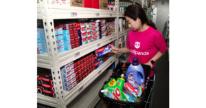 foodpanda staff at pandamart selecting items ordered by customers for delivery.
