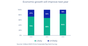 respondents expecting higher economic growth rose from 68% in 2021 to 84%. Coface expects China’s GDP growth to accelerate to between 4% and 5% in 2023.