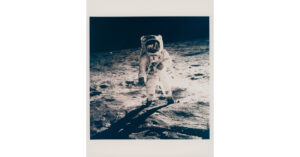 The colour and black-and-white photographs were originally taken for scientific purposes and most of them were kept under lock and key. The auction includes important visual treasures from the Golden Age of astronautics, such as the first space selfie, the first human-taken photograph of the Planet Earth, and the first human-taken photograph of the surface of another world. An absolute rarity, with an estimate between 15,000 and 25,000 euros, is the only photograph of the first man on the Moon (Neil Armstrong) taken by astronaut Buzz Aldrin during the first lunar landing of the APOLLO 11 mission in July 1969.