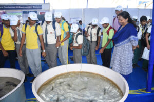 The event was organized under ICAR-CIFA’s flagship science outreach and community engagement initiative, with the objective of familiarizing school students with the world of freshwater aquaculture and its significance in ensuring food security, generating livelihoods, and promoting environmental sustainability. Hosted at the institute’s Kausalyaganga campus, the day-long programme offered a vibrant blend of exhibitions, live demonstrations, and interactive science activities tailored for young learners. The initiative was held with the support of the National Fisheries Development Board (NFDB), Hyderabad.