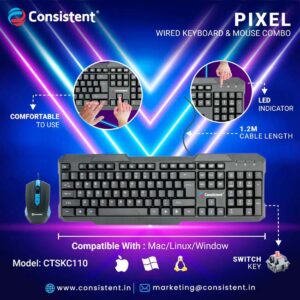Consitent PIXEL Wired Keyboard and Mouse Combo is available now at a price of INR 750 (MRP), on shop.consistent.in backed by a 1-year warranty. The product can also be purchased through Consistent’s network of distributors and authorized retail partners across India.