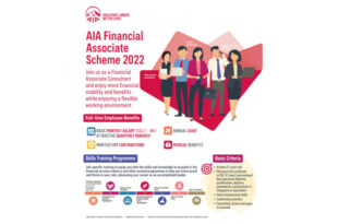 Read More »AIA Singapore introduces more than 500 financial sales advisory positions under new employment scheme providing greater financial stability to attract fresh graduates, mid-career switchers and stay-at-home-parents keen to return to the workforce
