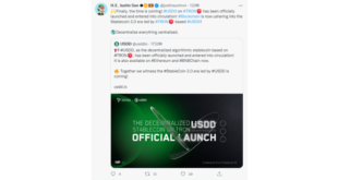 GENEVA, SWITZERLAND – Media OutReach – 5 May 2022 – On May 5, Justin Sun, Founder of TRON, announced on Twitter that the TRON DAO Reserve rolled out a decentralized stablecoin named USDD, which has so far been listed on Sunswap, Sun.io, Curve, Uniswap, Ellipsis, Pancakeswap, Kyberswap, etc., with an …