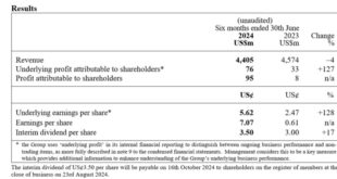 Hong Kong SAR- Media OutReach Newswire – 1 August 2024 – The following announcement was issued today to a Regulatory Information Service approved by the Financial Conduct Authority in the United Kingdom. Highlights Underlying Group profit attributable to shareholders of US$76 million, up from US$33 million in the prior year …