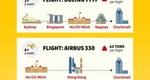 The new route adds additional capacity to the existing Ho Chi Minh City-Hong Kong route for outbound shipment to the United States Operated by Kalitta Air, the dedicated Boeing 777F cargo flight offers around 27% capacity increase to over 940 tons of weekly total gross payload SINGAPORE – Media OutReach – 22 …